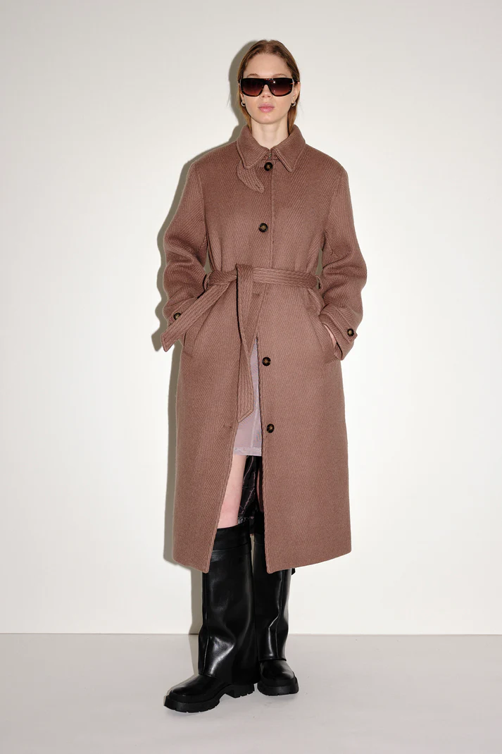 Amora Wool Taupe Gray Long Coat