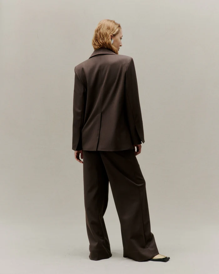 Haze double-breasted blazer is gemaakt van een klassieke Italiaanse wolmix. De stijl heeft brede revers en hoge splitten aan de achterkant. Dit is de blazer die elke vrouw deze winter nodig heeft.